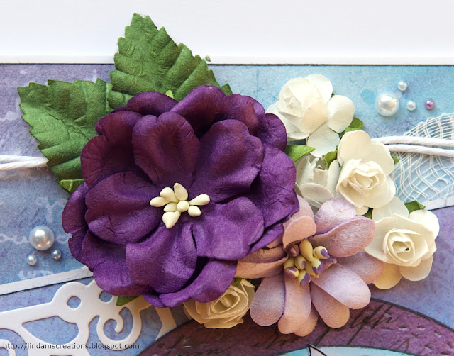 My papers are from the Where Wild Roses Grow paper pack from The Paper Tree. The sentiment is from a freebie set included with a crafting magazine, and I've used a Hobby Craft & Scrap die to cut it out. There are Echo Park enamel dots in two corners, and I've added Prima flowers.