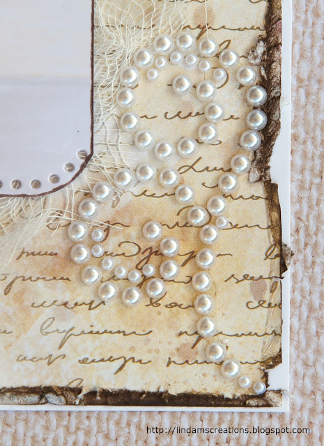 My flowers are 49 and Market and I Am Roses. I've also added a hand crocheted doily and a strip of Ultimate Crafts lace. I've made a little bow with the lace too. There are also a few Studio Light pearls and three little cupcake buttons, by Buttons Galore & More.