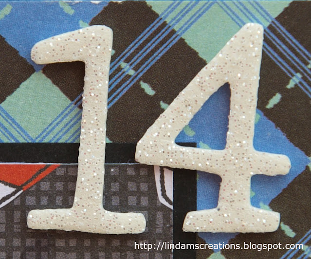 I've added Dress It Up Button snacks, and American Crafts glitter numbers. The enamel dots are Echo Park.