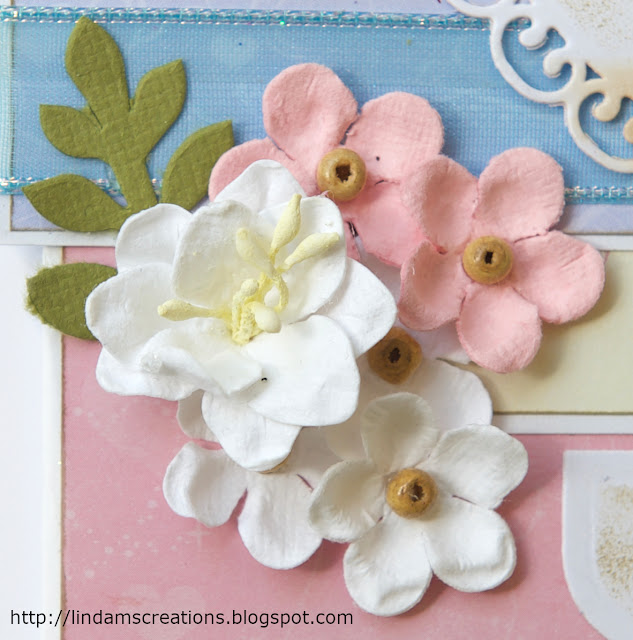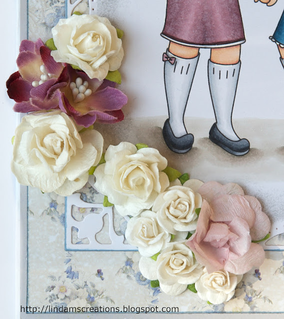 My papers and little sentiment tags are from the Bo Bunny Petal Lane paper pack. I've used a Spellbinders die to cut out the image and the paper behind it.