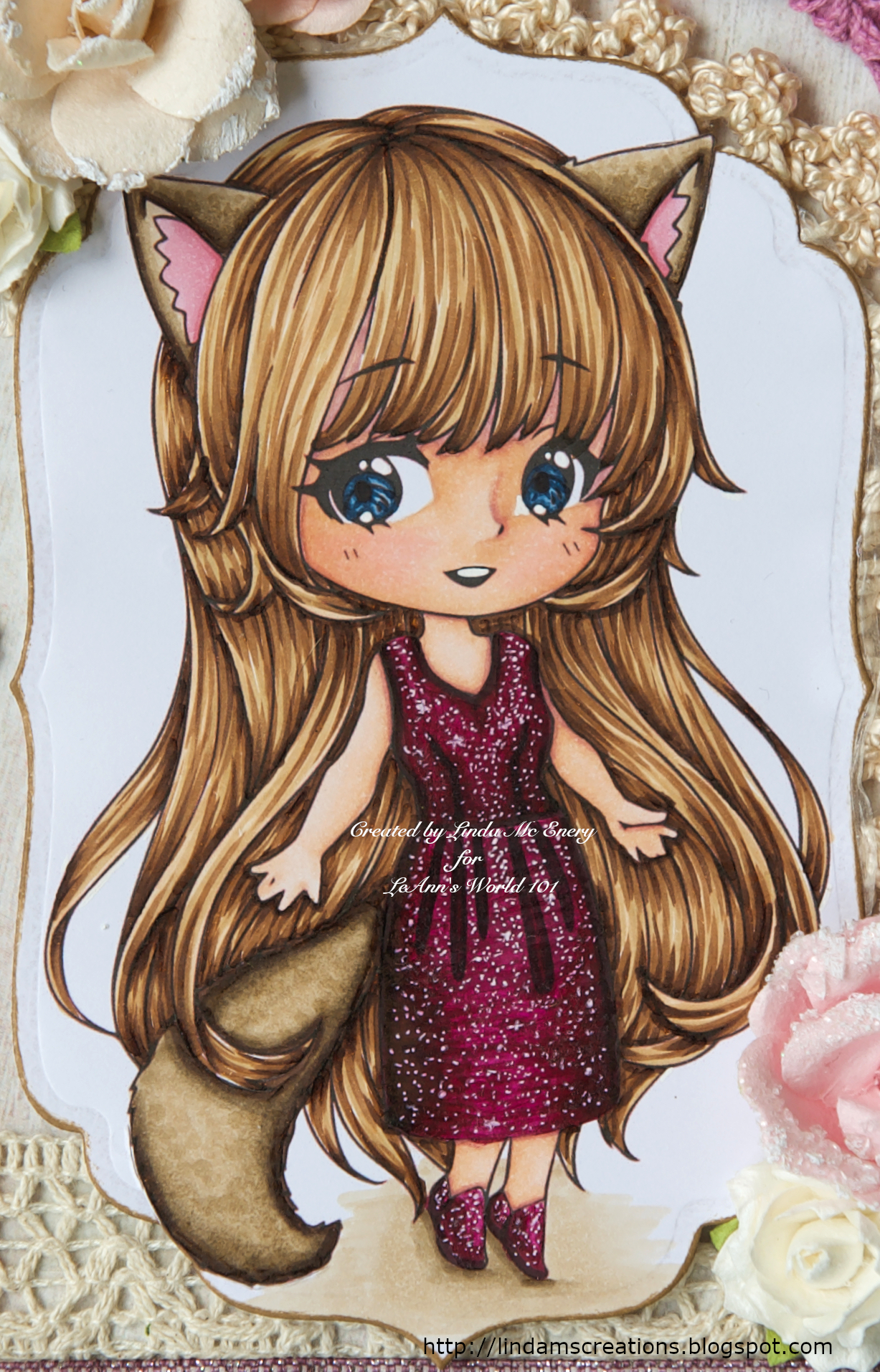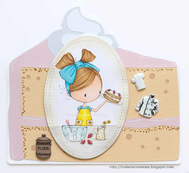 I have used She Loves Sunny Days on my card. I have coloured the image with Copics, but before colouring her, I stretched the image vertically, to make her look a little older.