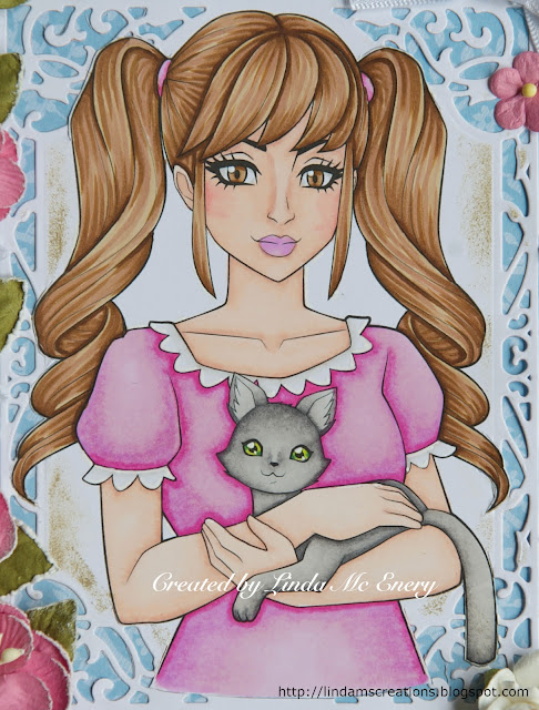 I've used an image from Sweet Escape Digis. It's called Girl and her cat. Unfortunately the image isn't currently in the Sweet Escape Digis Etsy store, but Berenice has previously added an image back to the store after I've used one that's been removed, so hopefully she'll do the same for this one. It's so beautiful!